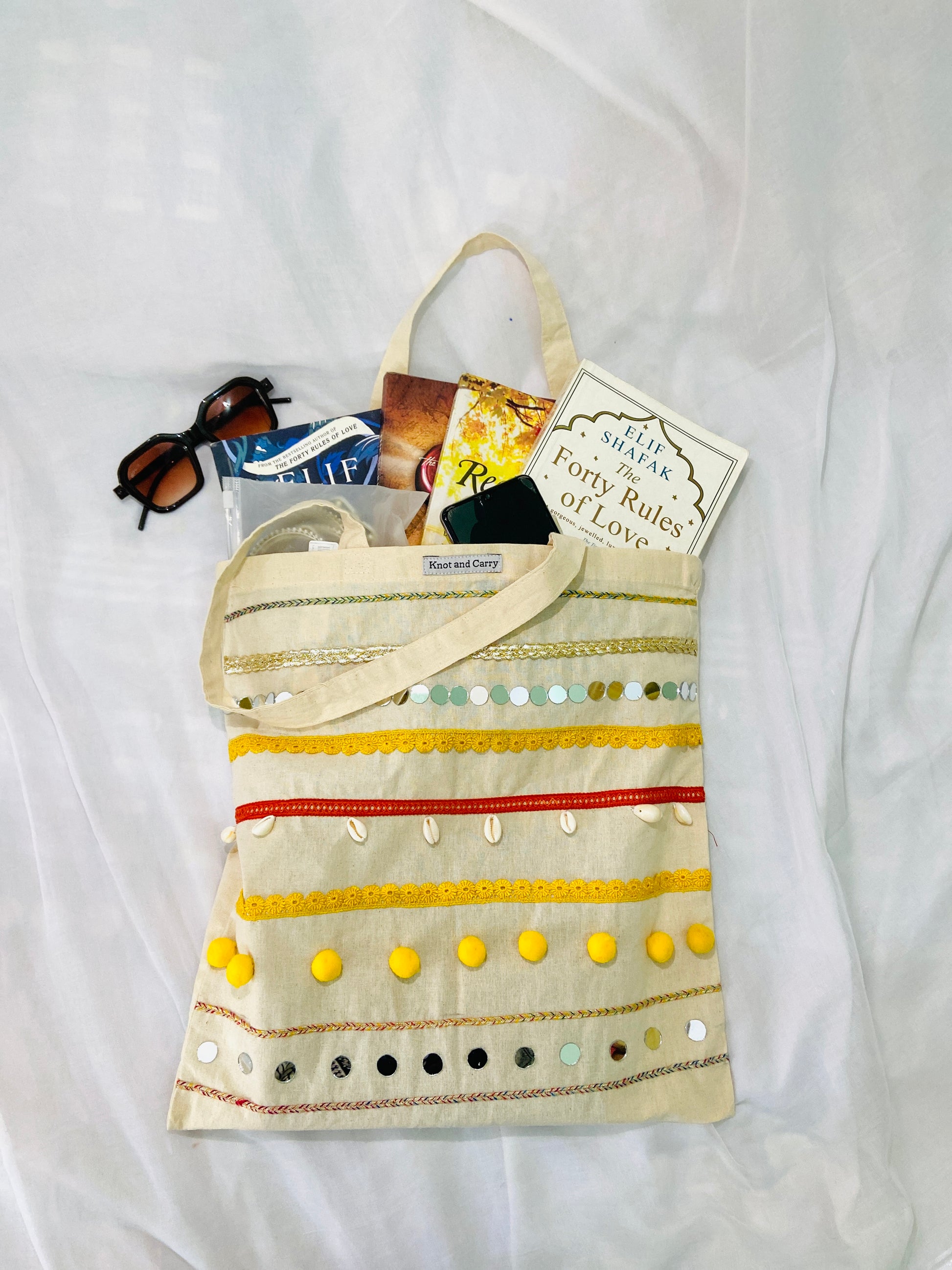 Embellished Gota Mirror Desi Cotton Tote Bag